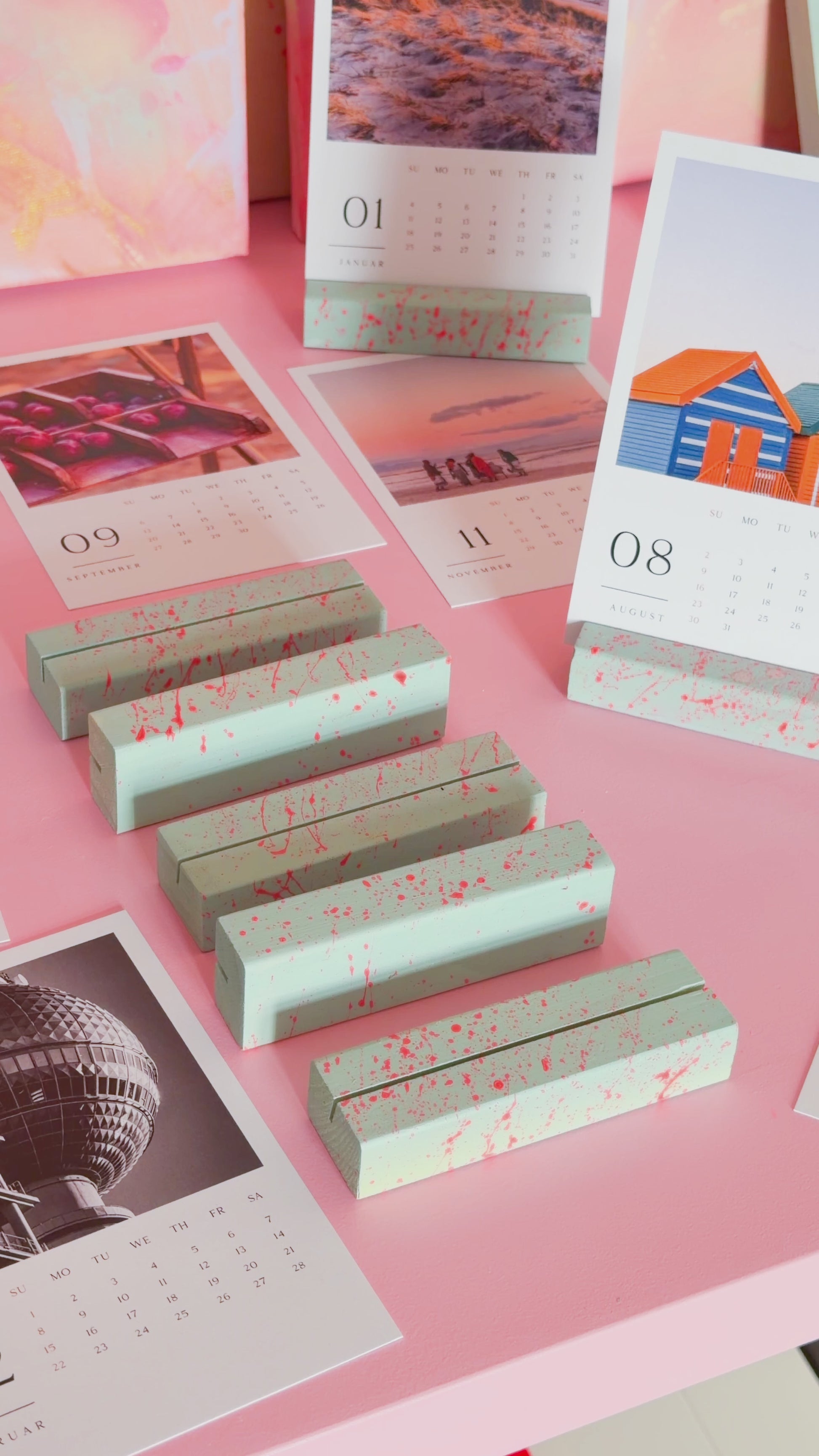 Jeder Kalender wird mit einem passenden Holzhalter geliefert (ca. 10 × 3 × 2 cm).